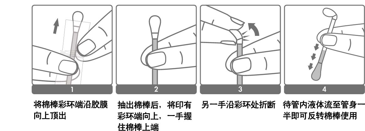 2.产品放置方向:棉棒彩环端向下,竖直放置,切勿倒置。